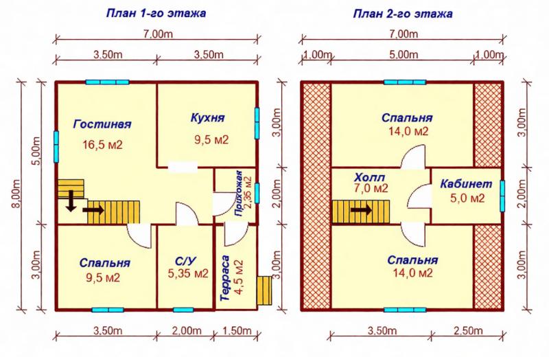 Высота сруба = 1 эт-3 м и 2 эт-2.7 м